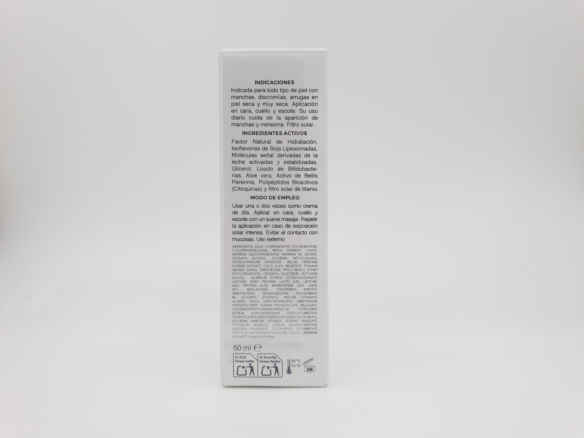 ACTIVE INGREDIENTS: Natural Moisturizing Factor, Liposomal Soy Isoflavones, Activated and Stabilized Milk-Derived Signal Molecules, Glycerol, Bifidobacteria Lysate, Aloe Vera, Bellis Perennis Active, Bioactive Polypeptides (Cytokines) and Titanium Sunscreen.