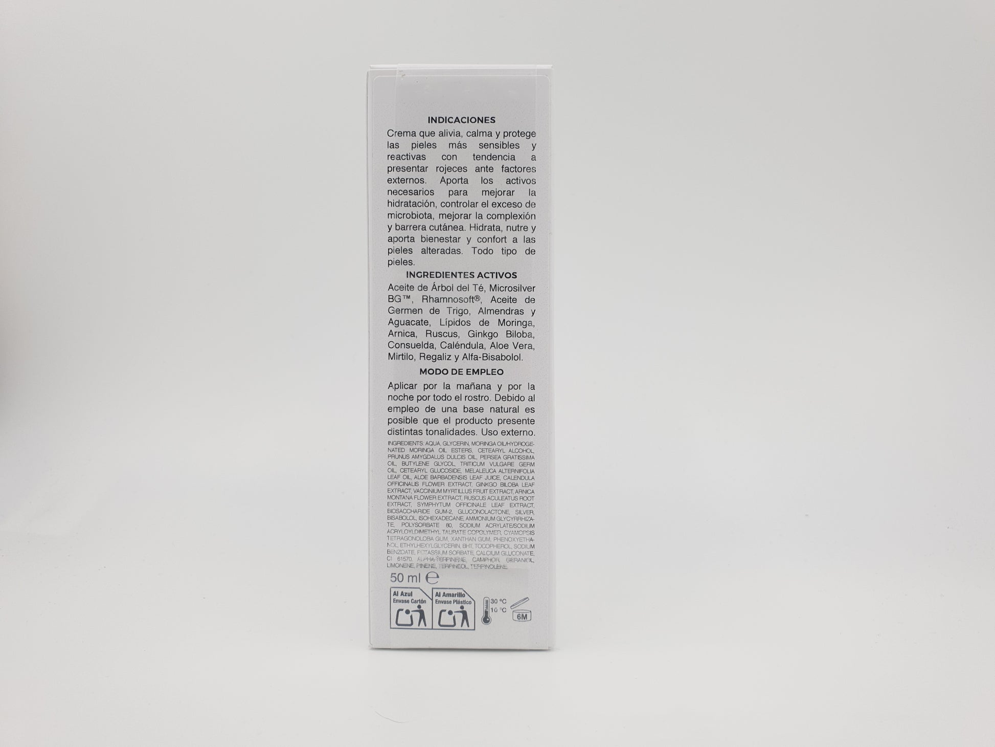 Cream specially formulated for sensitive and reactive skin prone to redness. Its combination of active ingredients such as Tea Tree Oil, Microsilver BG™, and Rhamnosoft® helps soothe, protect, and balance the skin's microbiota, improving hydration and the skin's natural barrier. Enriched with Moringa lipids, botanical extracts, and Alpha-Bisabolol, it deeply nourishes and provides long-lasting comfort. Ideal for daily use, morning and night, to restore the complexion and maintain a healthy, balanced skin. Suitable for all skin types.