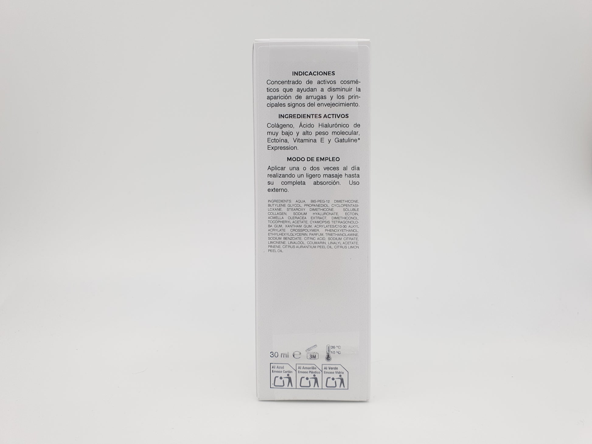 This concentrated serum combines collagen, hyaluronic acid of different molecular weights, ectoine, vitamin E, and Gatuline® Expression to visibly reduce wrinkles and signs of aging. Its advanced formula deeply hydrates and protects the skin, improving its firmness and elasticity.